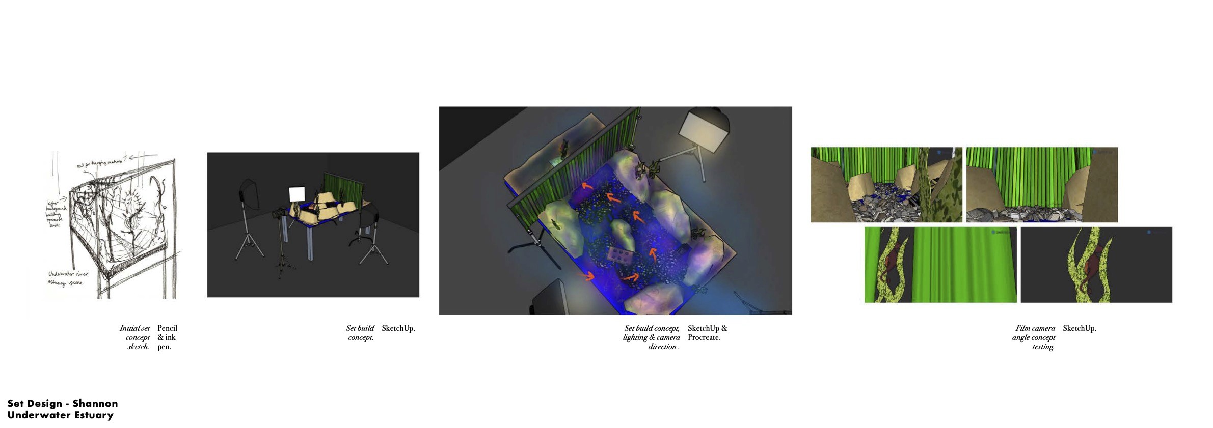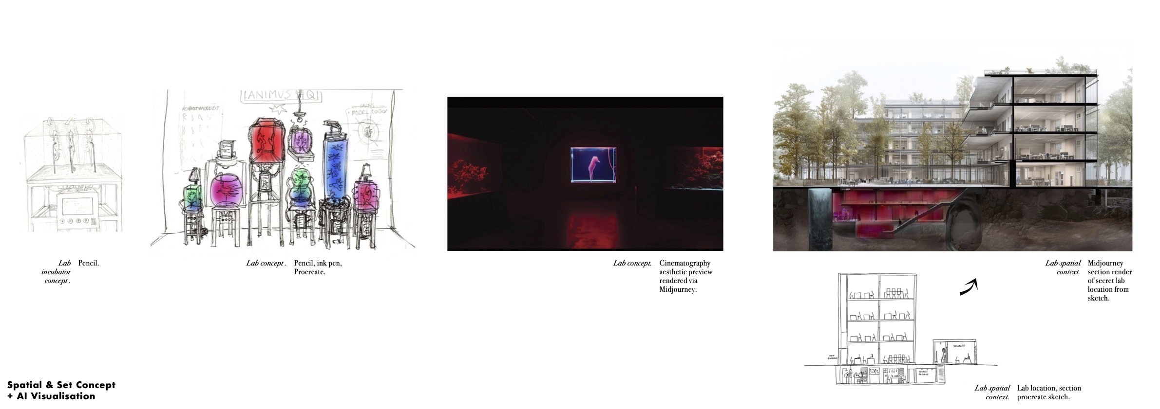 Creative process: Research, concepting, sketching, material & form testing, AI visualisation, Photoshop, Procreate, SketchUp, fabrication, studio filming, post-production in Premiere Pro.