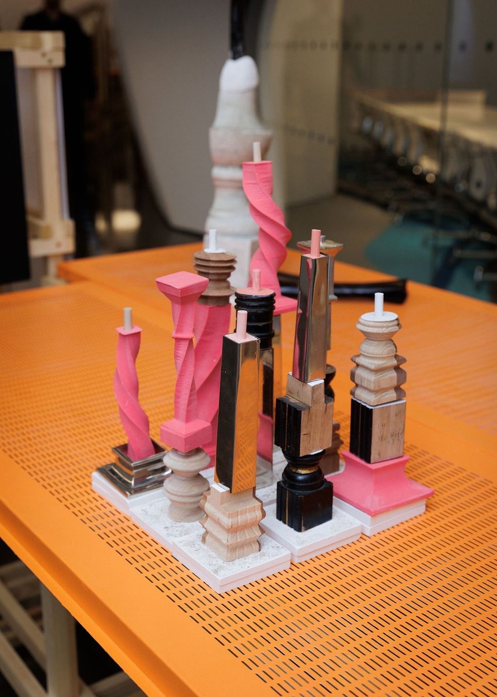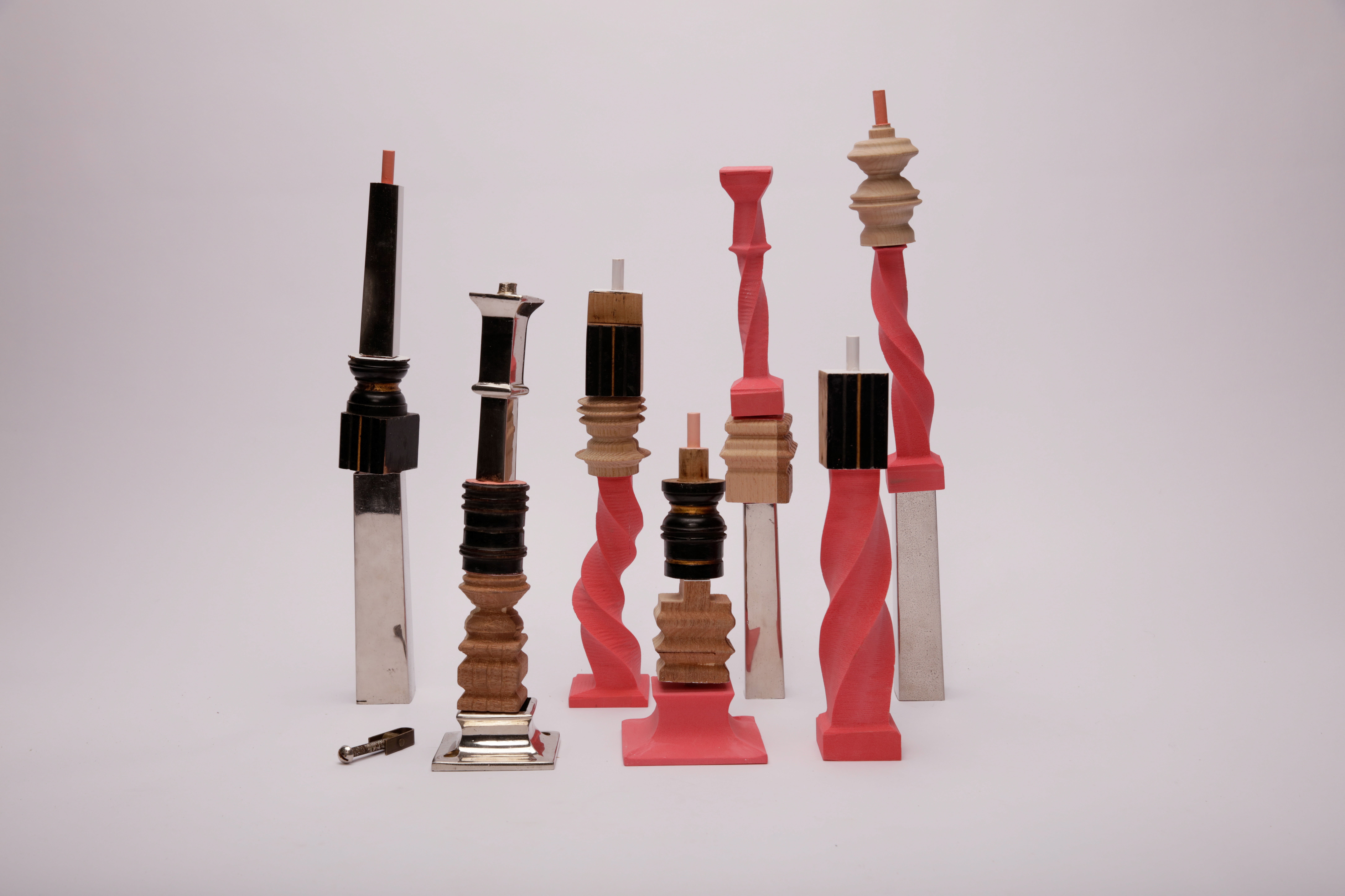 Built to bring people together around a shared kinaesthetic experience; stacking elements into new exploratory forms. The original items were evolved into twisted digital iterations CNC’d from discarded material.