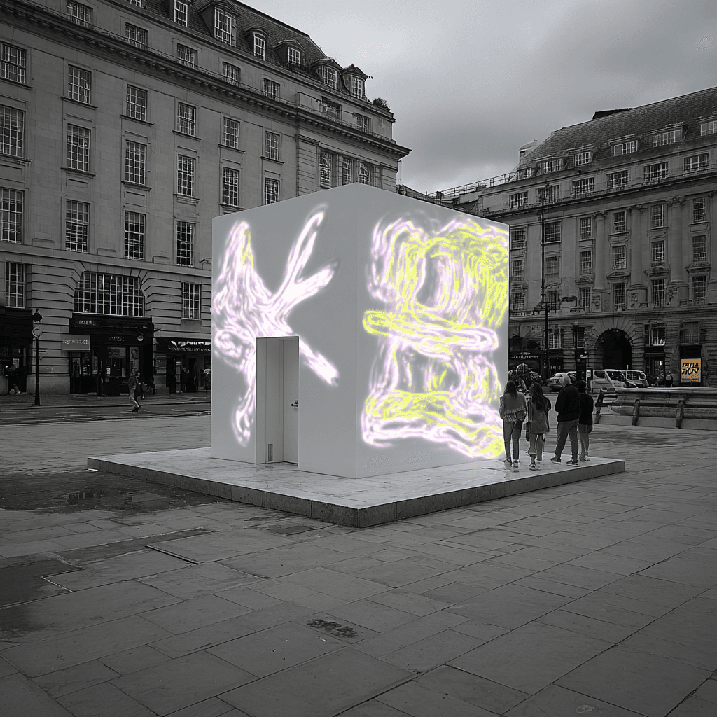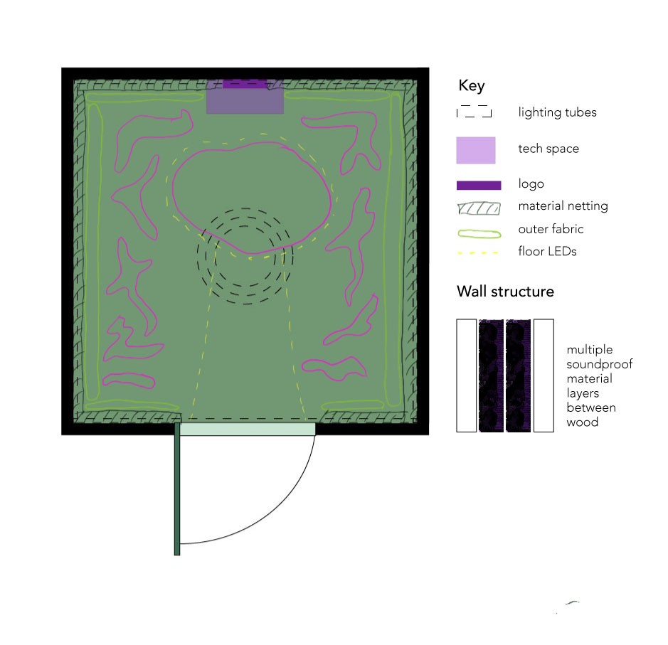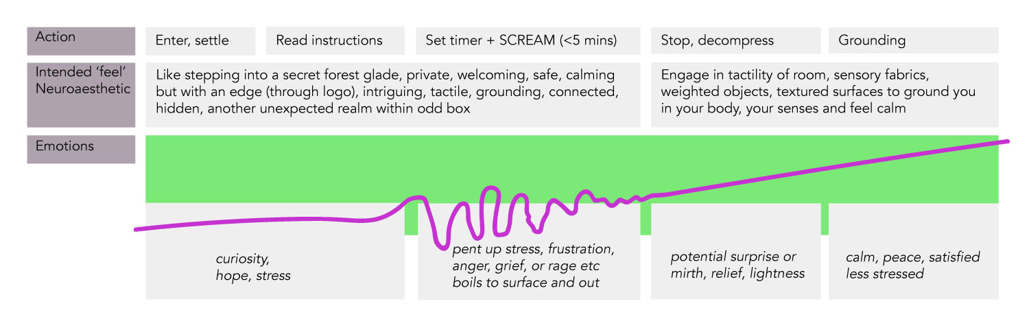 A sensory oasis to decompress away from the bustling city; screams from inside are transformed through a code-based audio-visualiser and displayed externally. These are archived in a digital gallery of Screams.
